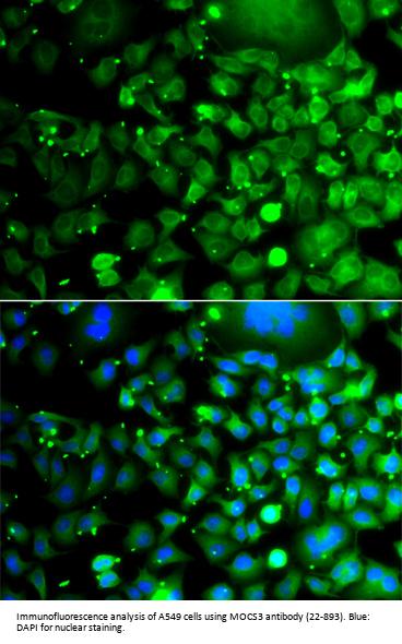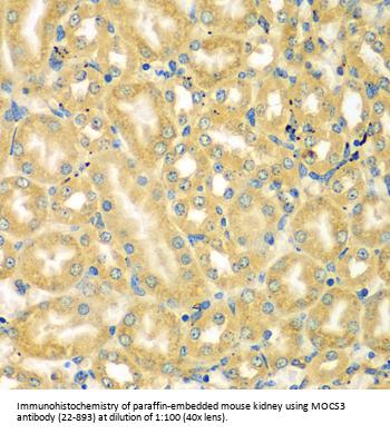 Recombinant fusion protein containing a sequence corresponding to amino acids 271-460 of human MOCS3 (NP_055299.1).