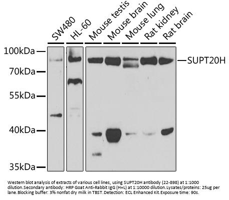 Recombinant fusion protein containing a sequence corresponding to amino acids 580-779 of human SUPT20H (NP_001014308.2).