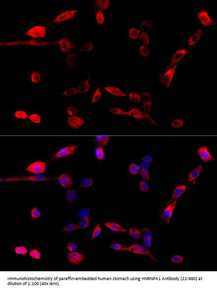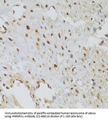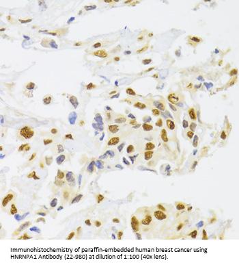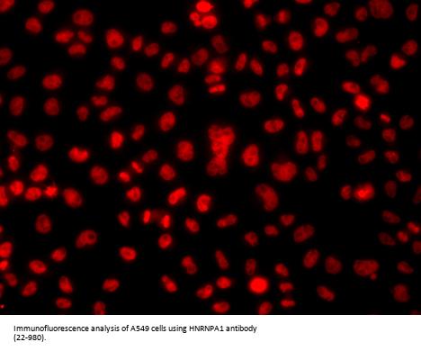 Recombinant fusion protein containing a sequence corresponding to amino acids 1-372 of human HNRNPA1 (NP_112420.1).