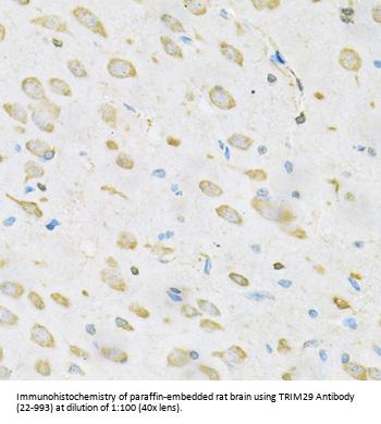Recombinant fusion protein containing a sequence corresponding to amino acids 309-588 of human TRIM29 (NP_036233.2).