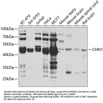 Recombinant fusion protein containing a sequence corresponding to amino acids 1-200 of human CHN1 (NP_001813.1).