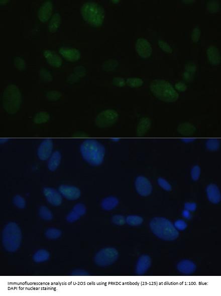 This gene encodes the catalytic subunit of the DNA-dependent protein kinase (DNA-PK). It functions with the Ku70/Ku80 heterodimer protein in DNA double strand break repair and recombination. The protein encoded is a member of the PI3/PI4-kinase family.