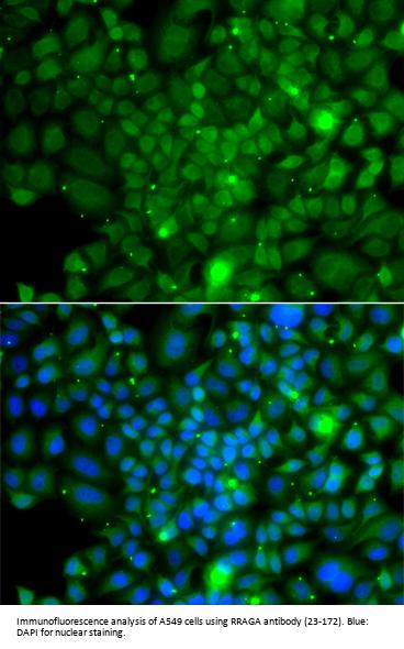 Recombinant fusion protein containing a sequence corresponding to amino acids 1-313 of human RRAGA (NP_006561.1).