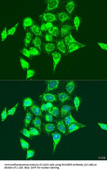 Recombinant fusion protein containing a sequence corresponding to amino acids 540-689 of human RASGRP3 (NP_056191.1).