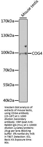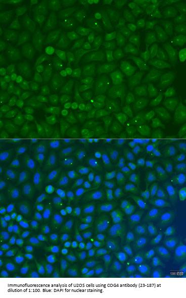 Recombinant fusion protein containing a sequence corresponding to amino acids 510-789 of human COG4 (NP_056201.2).