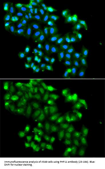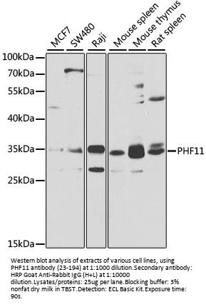 Recombinant fusion protein containing a sequence corresponding to amino acids 1-292 of human PHF11 (NP_001035533.1).