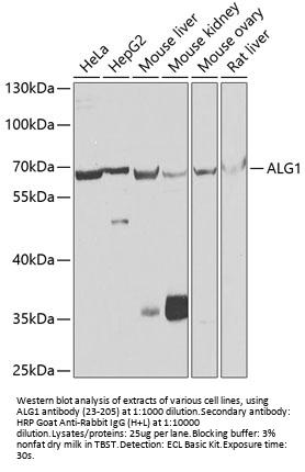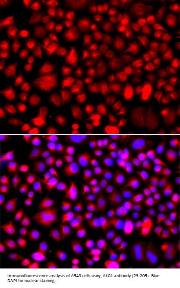 Recombinant fusion protein containing a sequence corresponding to amino acids 215-464 of human ALG1 (NP_061982.3).