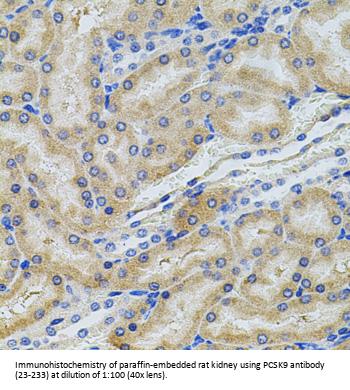A synthetic peptide corresponding to a sequence within amino acids 600 to the C-terminus of human PCSK9 (NP_777596.2).