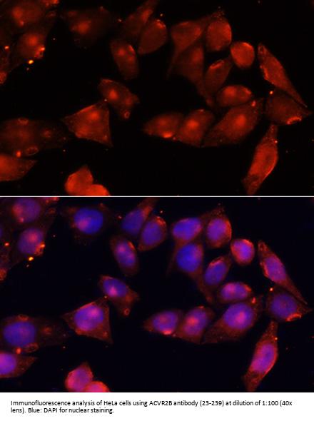Activins are dimeric growth and differentiation factors which belong to the transforming growth factor-beta (TGF-beta) superfamily of structurally related signaling proteins. Activins signal through a heteromeric complex of receptor serine kinases which include at least two type I (I and IB) and two type II (II and IIB) receptors. These receptors are all transmembrane proteins, composed of a ligand-binding extracellular domain with cysteine-rich region, a transmembrane domain, and a cytoplasmic domain with predicted serine/threonine specificity. Type I receptors are essential for signaling; and type II receptors are required for binding ligands and for expression of type I receptors. Type I and II receptors form a stable complex after ligand binding, resulting in phosphorylation of type I receptors by type II receptors. Type II receptors are considered to be constitutively active kinases. This gene encodes activin A type IIB receptor, which displays a 3- to 4-fold higher affinity for the ligand than activin A type II receptor.