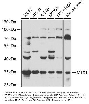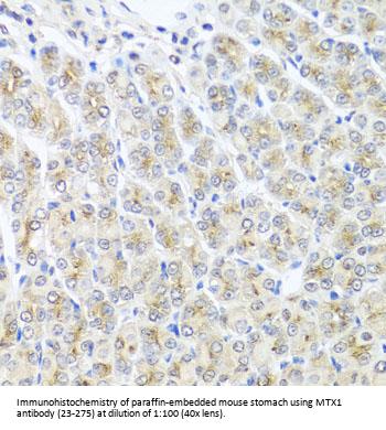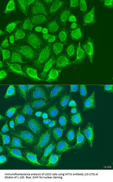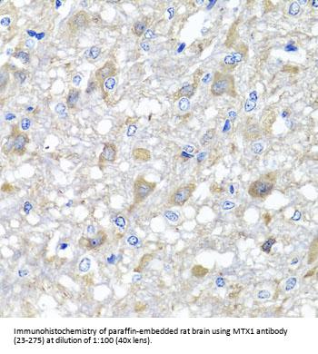 Recombinant fusion protein containing a sequence corresponding to amino acids 186-435 of human MTX1 (NP_942584.2).