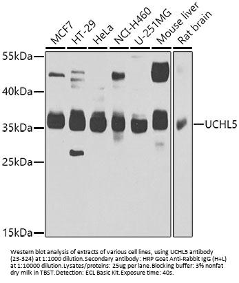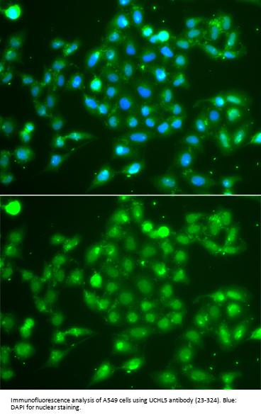 Recombinant fusion protein containing a sequence corresponding to amino acids 1-328 of human UCHL5 (NP_001186190.1).