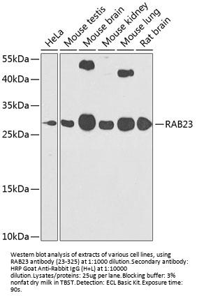 Recombinant fusion protein containing a sequence corresponding to amino acids 1-237 of human RAB23 (NP_057361.3).