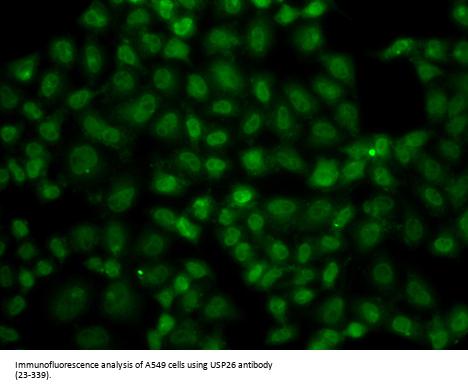 Recombinant fusion protein containing a sequence corresponding to amino acids 664-913 of human USP26 (NP_114113.1).