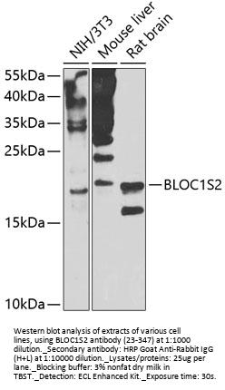 Recombinant fusion protein containing a sequence corresponding to amino acids 44-142 of human BLOC1S2 (NP_776170.2).