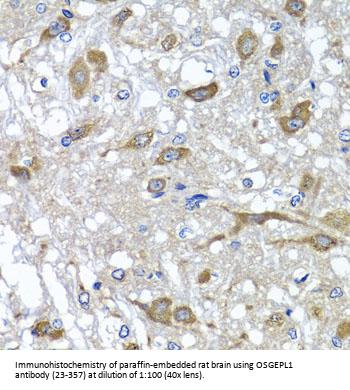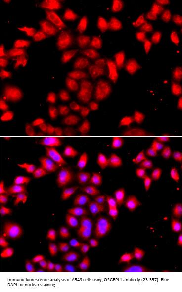 Recombinant fusion protein containing a sequence corresponding to amino acids 1-270 of human OSGEPL1 (NP_071748.2).