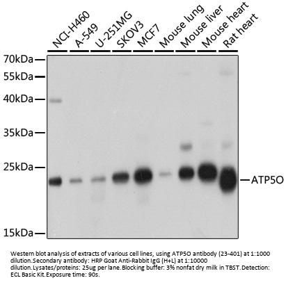 Recombinant fusion protein containing a sequence corresponding to amino acids 24-213 of human ATP5O (NP_001688.1).