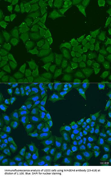 Recombinant fusion protein containing a sequence corresponding to amino acids 75-314 of human MAGEA6 (NP_005354.1).