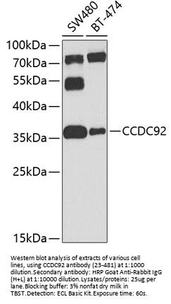 Recombinant fusion protein containing a sequence corresponding to amino acids 1-331 of human CCDC92 (NP_079416.1).