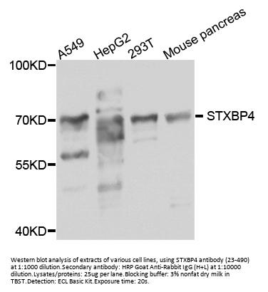 Recombinant fusion protein containing a sequence corresponding to amino acids 344-553 of human STXBP4 (NP_848604.3).