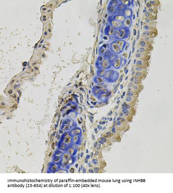The inhibin beta B subunit joins the alpha subunit to form a pituitary FSH secretion inhibitor. Inhibin has been shown to regulate gonadal stromal cell proliferation negatively and to have tumour-suppressor activity. In addition, serum levels of inhibin have been shown to reflect the size of granulosa-cell tumors and can therefore be used as a marker for primary as well as recurrent disease. Because expression in gonadal and various extragonadal tissues may vary severalfold in a tissue-specific fashion, it is proposed that inhibin may be both a growth/differentiation factor and a hormone. Furthermore, the beta B subunit forms a homodimer, activin B, and also joins with the beta A subunit to form a heterodimer, activin AB, both of which stimulate FSH secretion.
