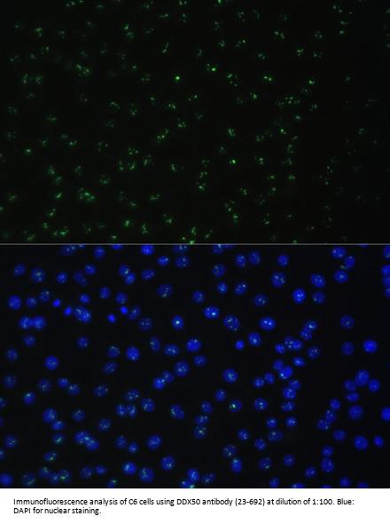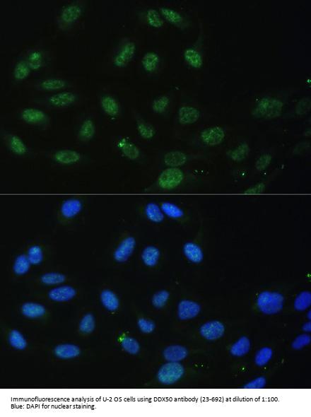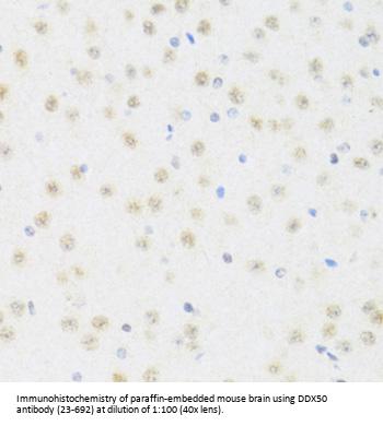Recombinant fusion protein containing a sequence corresponding to amino acids 1-135 of human DDX50 (NP_076950.1).