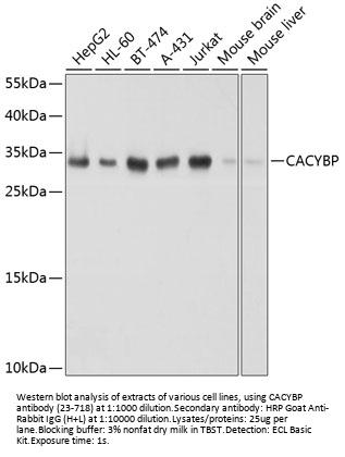 Recombinant fusion protein containing a sequence corresponding to amino acids 1-228 of human CACYBP (NP_055227.1).