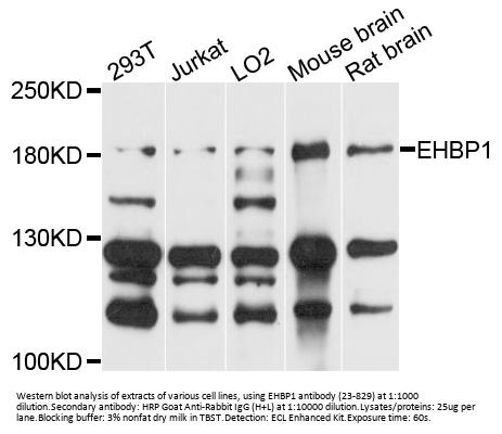 Recombinant fusion protein containing a sequence corresponding to amino acids 1-100 of human EHBP1 (NP_056067.2).