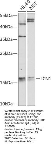 Recombinant fusion protein containing a sequence corresponding to amino acids 19-176 of human LCN1 (NP_002288.1).