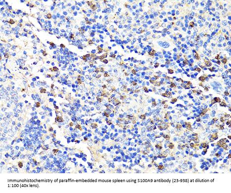 Recombinant fusion protein containing a sequence corresponding to amino acids 1-114 of human S100A9 (NP_002956.1).