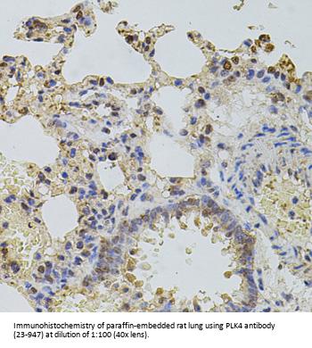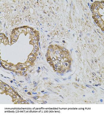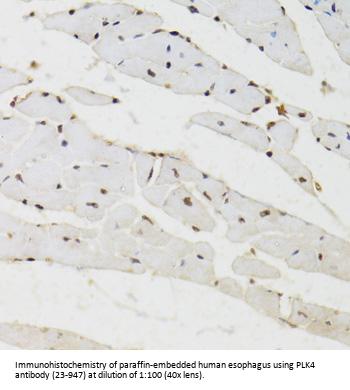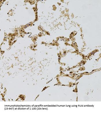 Recombinant fusion protein containing a sequence corresponding to amino acids 641-970 of human PLK4 (NP_055079.3).