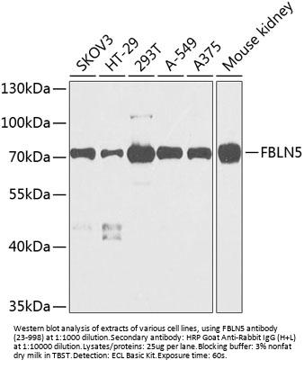 Recombinant fusion protein containing a sequence corresponding to amino acids 199-448 of human FBLN5 (NP_006320.2).