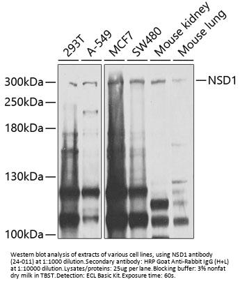 Recombinant fusion protein containing a sequence corresponding to amino acids 60-260 of human NSD1 (NP_071900.2).