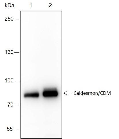 Caldesmon is an actin- and myosin-binding protein implicated in the regulation of actomyosin interactions in smooth muscle and nonmuscle cells. It Stimulates actin binding of tropomyosin which increases the stabilization of actin filament structure. In muscle tissues, inhibits the actomyosin ATPase by binding to F-actin. This inhibition is attenuated by calcium-calmodulin and is potentiated by tropomyosin. Interacts with actin, myosin, two molecules of tropomyosin and with calmodulin. Besides, it also plays an essential role during cellular mitosis and receptor capping.