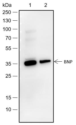 BNP (B-type natriuretic peptide), also known as NPPB, is a cardiac hormone that is secreted mainly in the ventricles in response to increased wall stress. The protein undergoes two cleavage events, one within the cell and the other after secretion into the blood. BNP is associated with natriuresis, diuresis, vasorelaxation, inhibition of renin and aldosterone secretion, and plays a key role in cardiovascular homeostasis. BNP is a marker of systolic and diastolic dysfunction and a strong predictor of mortality in heart failure patients.
