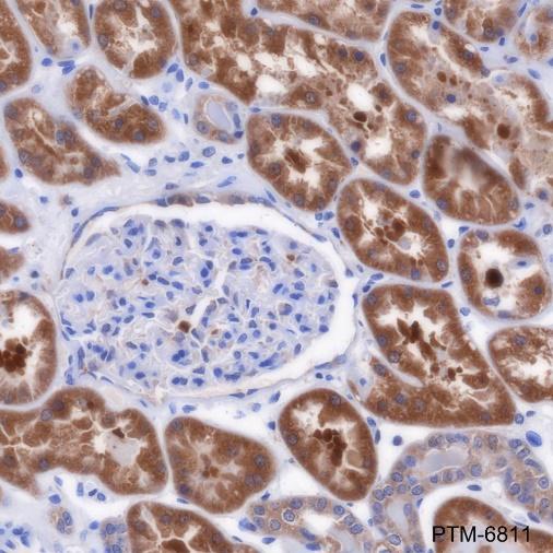 Aldehyde dehydrogenase 9 family member A1 (ALDH9A1) is a member of aldehyde dehydrogenase family. ALDH9A1 has a high activity for oxidation of gamma-aminobutyraldehyde and other amino aldehydes. ALDH9A1 catalyzes the dehydrogenation of gamma-aminobutyraldehyde to gamma-aminobutyric acid. ALDH9A1 has 3 isoforms with the molecular mass of 46-56 kDa.