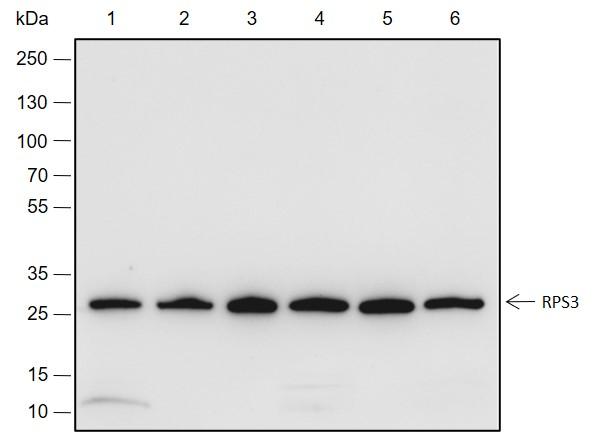 Ribosomal protein S3 (RPS3) is a component of the 40S ribosomal subunit and is involved in translation. HSP90 interacts with both the amino-terminus and carboxy-terminus of RPS3, preventing its ubiquitination and degradation and thereby retaining the integrity of the ribosome. RPS3 has also been shown to function as an endonuclease during DNA damage repair. Furthermore, overexpression of RPS3 sensitizes lymphocytic cells to cytokine-induced apoptosis, indicating a third role for RPS3 during apoptosis.
