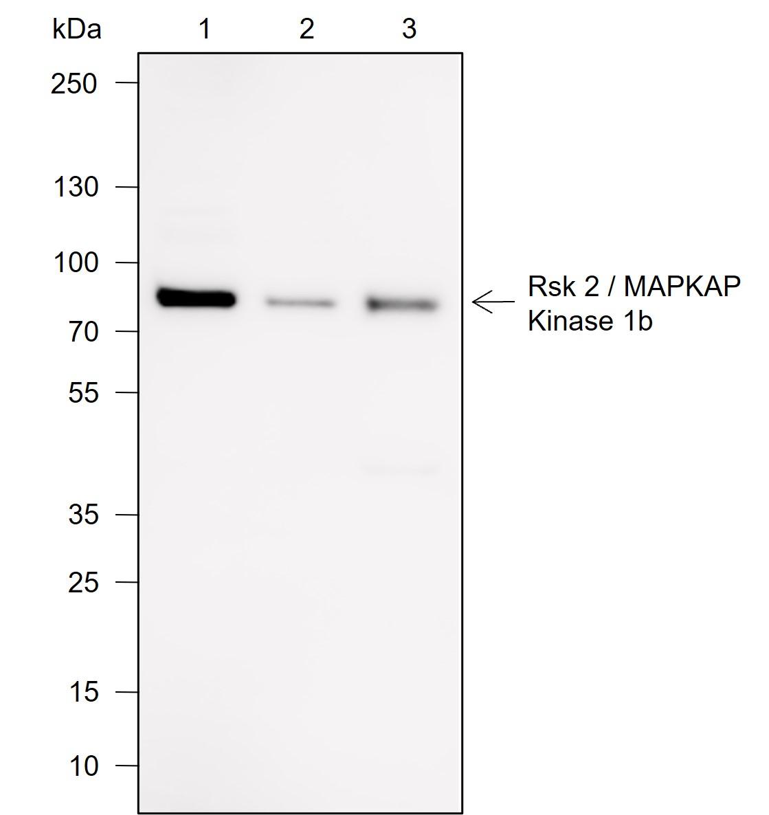 Ribosomal protein S6 kinase alpha-3, S6K-alpha-3, 90 kDa ribosomal protein S6 kinase 3 (p90-RSK 3; p90RSK3), Insulin-stimulated protein kinase 1 (ISPK-1), MAP kinase-activated protein kinase 1b (MAPK-activated protein kinase 1b; MAPKAP kinase 1b; MAPKAPK-1b), Ribosomal S6 kinase 2 (RSK-2), pp90RSK2, RPS6KA3, ISPK1, MAPKAPK1B