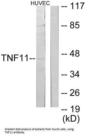 Rabbit polyclonal antibody against TNFSF11 protein. Immunogen region is Internal.