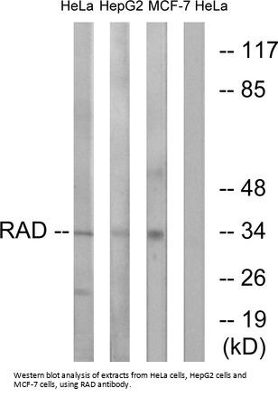 Rabbit polyclonal antibody against RAD protein. Immunogen region is Internal.