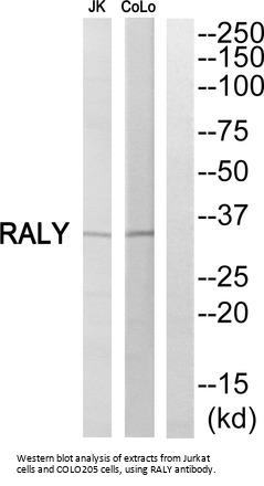 Rabbit polyclonal antibody against RALY protein. Immunogen region is Internal.