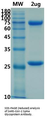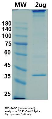 SARS-CoV-2/COVID-19 Spike Glycoprotein Antibody is a chimaeric recombinant antibody expressed in CHO cells against SARS-CoV-2 Spike Glycoprotein, containing Mouse variable region and Human IgM constant region.The SARS-CoV-2 Spike Protein (S protein) is a viral protein that allows the entry of SARS-CoV-2 into human cells. The protein forms trimers on the viral capsid and binds to human Angiotensin Converting Enzyme 2 (ACE2) located on the cell surface. The protein has a cleavage site between the S1 and S2 subunits that is targeted by the human enzyme Furin, and it may also cause the development of a syncytium (cell fusion). Antibodies to S protein can prevent viral entry as well as target the virus for further immune action.