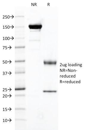 For coating for ELISA, order Ab without BSA|Higher concentration may be required for direct detection using primary antibody conjugates than for indirect detection with secondary antibody|Optimal dilution and staining procedure for a specific application should be determined by user|Recommended starting concentrations for titration are 1-2 ug/mL for most applications, or 1 ug/million cells/100 uL for flow cytometry