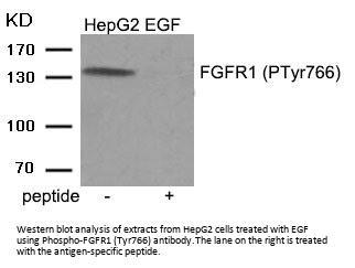 Tyrosine-protein kinase that acts as cell-surface receptor for fibroblast growth factors and plays an essential role in the regulation of embryonic development, cell proliferation, differentiation and migration. Required for normal mesoderm patterning and correct axial organization during embryonic development, normal skeletogenesis and normal development of the gonadotropin-releasing hormone (GnRH) neuronal system. Phosphorylates PLCG1, FRS2, GAB1 and SHB. Ligand binding leads to the activation of several signaling cascades. Activation of PLCG1 leads to the production of the cellular signaling molecules diacylglycerol and inositol 1, 4, 5-trisphosphate. Phosphorylation of FRS2 triggers recruitment of GRB2, GAB1, PIK3R1 and SOS1, and mediates activation of RAS, MAPK1/ERK2, MAPK3/ERK1 and the MAP kinase signaling pathway, as well as of the AKT1 signaling pathway. Promotes phosphorylation of SHC1, STAT1 and PTPN11/SHP2. In the nucleus, enhances RPS6KA1 and CREB1 activity and contributes to the regulation of transcription. FGFR1 signaling is down-regulated by IL17RD/SEF, and by FGFR1 ubiquitination, internalization and degradation.Cross MJ, et al. (2002) Mol Biol Cell 13, 2881-93. Foehr ED, Raffioni S, Murray-Rust J, Bradshaw RA (2001)J Biol Chem 276, 37529-36. Cross MJ, et al. (2000)J Cell Sci 113 ( Pt 4), 643-51 .