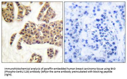 The protein encoded by BAD gene is a member of the BCL-2 family. BCL-2 family members are known to be regulators of programmed cell death. This protein positively regulates cell apoptosis by forming heterodimers with BCL-xL and BCL-2, and reversing their death repressor activity. Proapoptotic activity of this protein is regulated through its phosphorylation. Protein kinases AKT and MAP kinase, as well as protein phosphatase calcineurin were found to be involved in the regulation of this protein. Alternative splicing of this gene results in two transcript variants which encode the same isoform.Wang H.-G., Cell 87:629-638(1996).Ottilie S., J. Biol. Chem. 272:30866-30872(1997).The MGC Project Team, Genome Res. 14:2121-2127(2004).