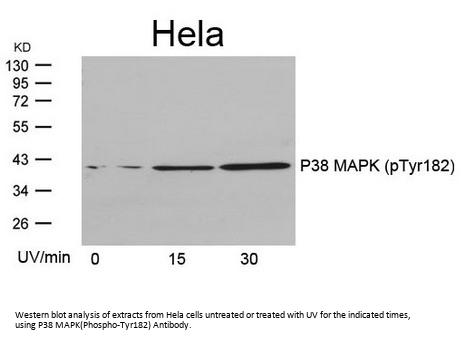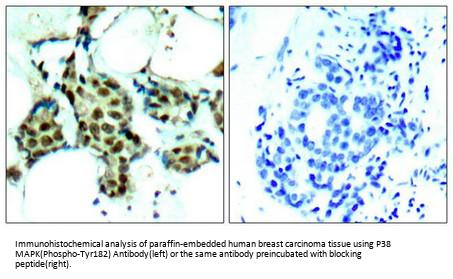 Responds to activation by environmental stress, pro-inflammatory cytokines and lipopolysaccharide (LPS) by phosphorylating a number of transcription factors, such as ELK1 and ATF2 and several downstream kinases, such as MAPKAPK2 and MAPKAPK5. Plays a critical role in the production of some cytokines, for example IL-6. May play a role in stabilization of EPO mRNA during hypoxic stress. Isoform Mxi2 activation is stimulated by mitogens and oxidative stress and only poorly phosphorylates ELK1 and ATF2. Isoform Exip may play a role in the early onset of apoptosis. Ming Zheng, et al.(2005) The FASEB Journal. 19: 109-111 Bernt van den et al.(2001) Blink Immunology, 166: 582-587 Arshad Rahman, et al. (2004) Am J Physiol Lung Cell Mol Physiol 287: L1017-L1024 Osamu Yoshino, et al. (2003) Endocrinology &, Metabolism Vol. 88: 2236-2241