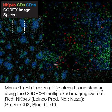 CODEX® This mouse NKP46 antibody is formulated to simplify the antibody preparation needed when performing a CODEX® barcode conjugate. The suggested concentration is 0.5 mg/ml.