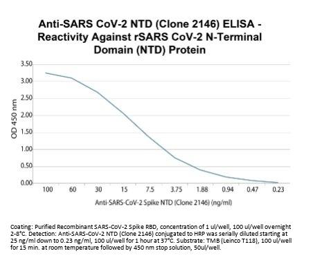 Anti-SARS-CoV-2 Spike NTD, clone 2146, specifically targets an epitope on the SARS-CoV-2 spike protein N-terminal domain. This antibody does not cross-react with the receptor-binding domain (RBD) of the spike protein or the NTD of SARS-CoV