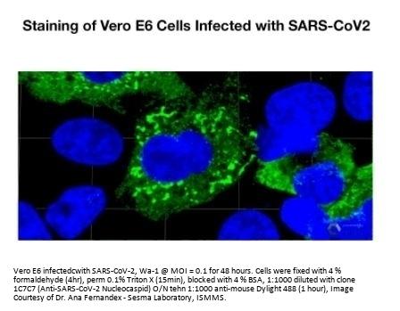 Anti-SARS-CoV-2 Nucleocapsid, clone 1C7C7, specifically targets an epitope on the SARS-CoV-2 and SARS-CoV nucleocapsid protein. This antibody does not cross-react with the nucleocapsid of other common human coronaviruses, OC43 and 229E