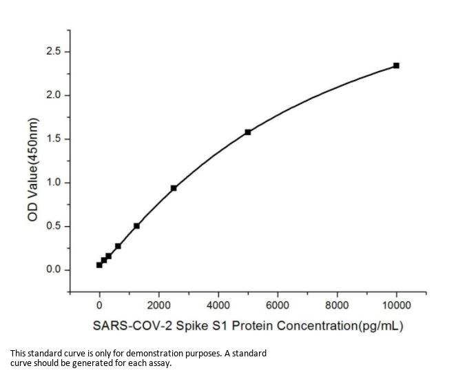 Standard: Recommended Concentration: 156-10000pg/mL, Sample: Recombinant SARS-COV-2 Spike S1 Protein with His tag