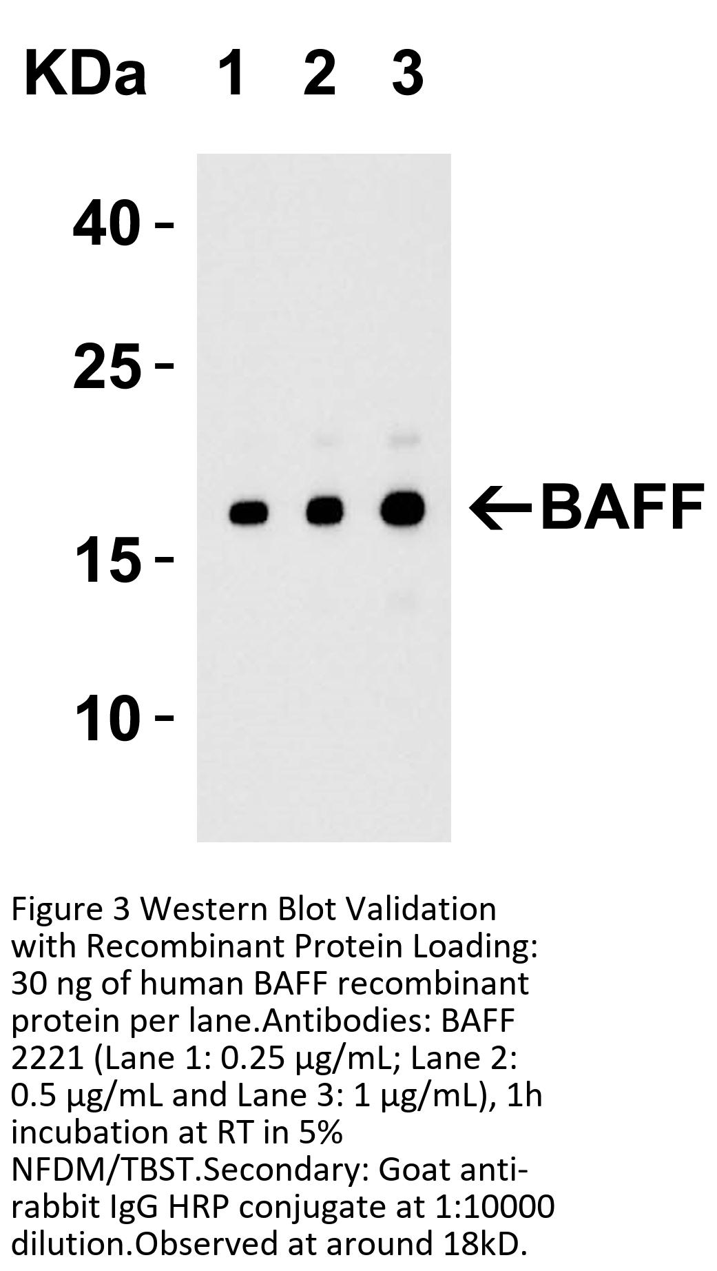 Recombinant Protein Test (Figure 3): Anti-BAFF antibodies (2221) detected human BAFF recombinant protein at different concentrations.